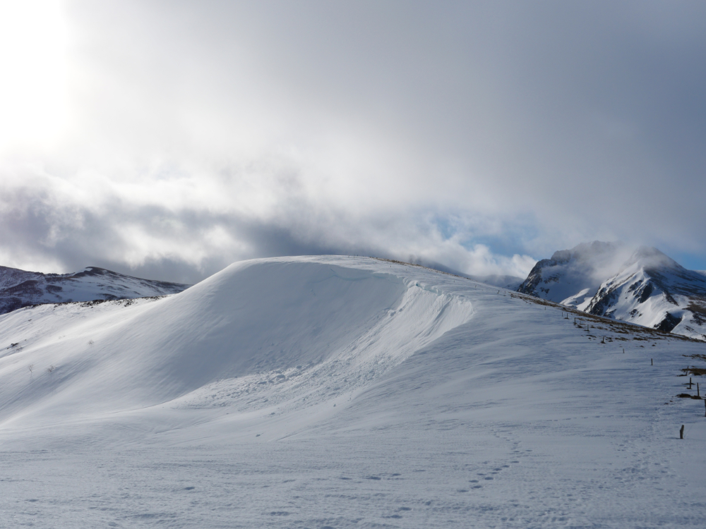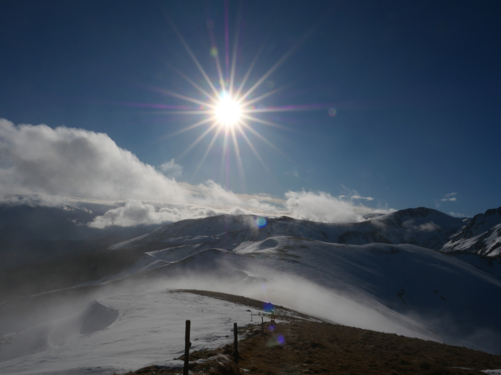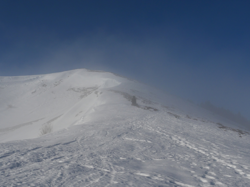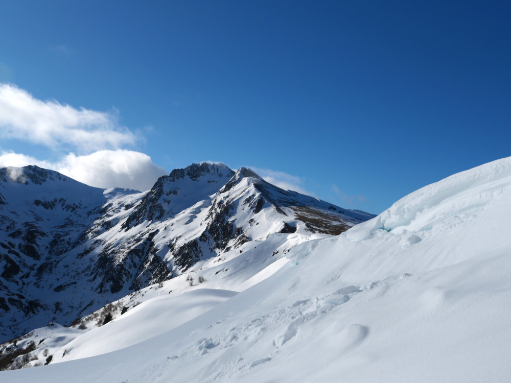 Au départ, la pente exige quelques efforts jusqu’au sommet. Quelques imprudences en ces températures proches de 0° sont à éviter. Les pointes des raquettes ne sont pas de taille à s’affronter avec de pentes trop fortes sur la neige durcie par le froid. La curiosité qui a tendance à nous rapprocher des bords enneigés peut s’avérer dangereuse car le plaque à vent n’attends plus que qelques kilos pour s’écrouler.
