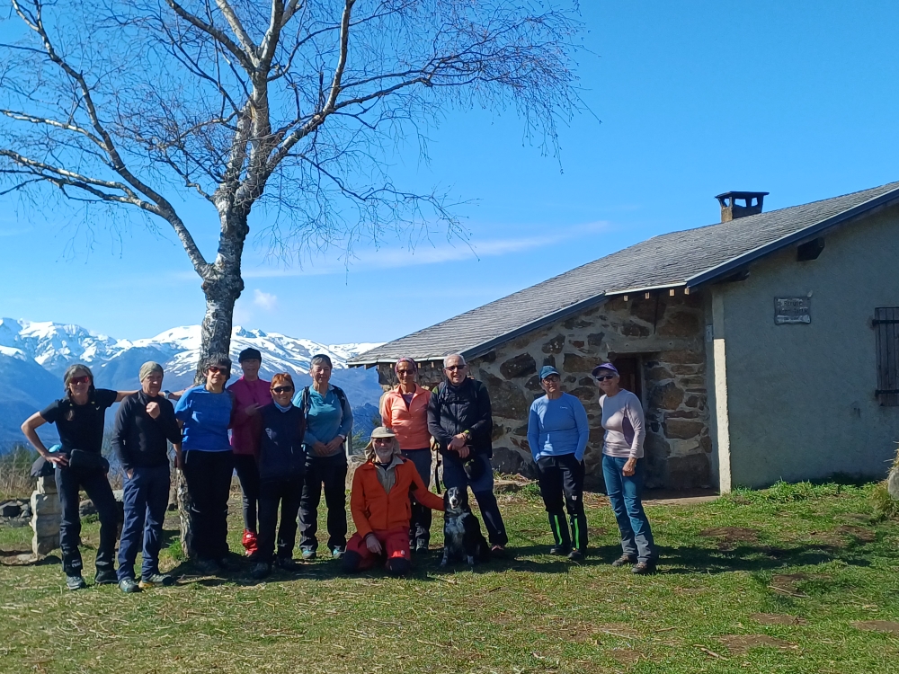 Nous étions 12 sur la place d’Arnave à prendre la direction du col d’Ijou d’où nous avons fait un petit coucou à Daniel sur le balcon de sa maison à Croquié, encore empêché de randonner par une blessure traînante à la cheville.